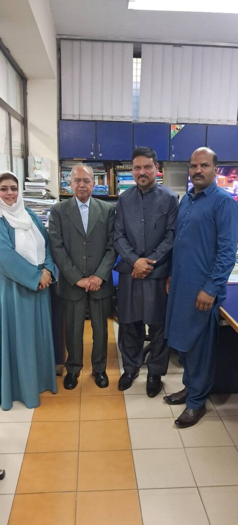 A delegation led by APNEMC Chairman Siddique Anzar met with senior journalist Hafiz Tahir Khalil at his office (The News/Jang, Islamabad).